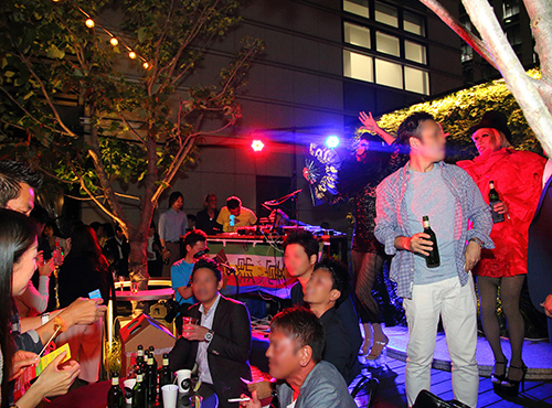錦宴のGMCは GOOD MATSURI CAFE ということで、 店内に設けた出店スペースで、炭火焼や、特大パエリア等、レストラン縁日をご用意!テラスエリアでは、夏を楽しむトロピカルハウスで盛り上げるDJが登場!!